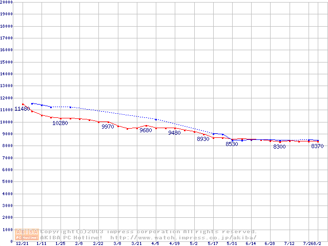 | [↓次グラフ]: | HDD 100GB以上(5400rpmクラス)の最安値推移 |