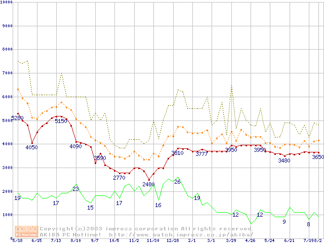 PC133 SDRAM DIMM CasLatency=2の最安値推移