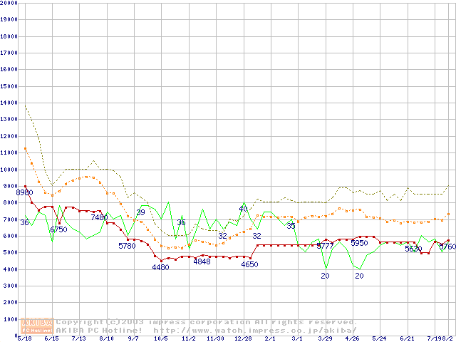 PC133 SDRAM DIMM CasLatency=3の最安値推移