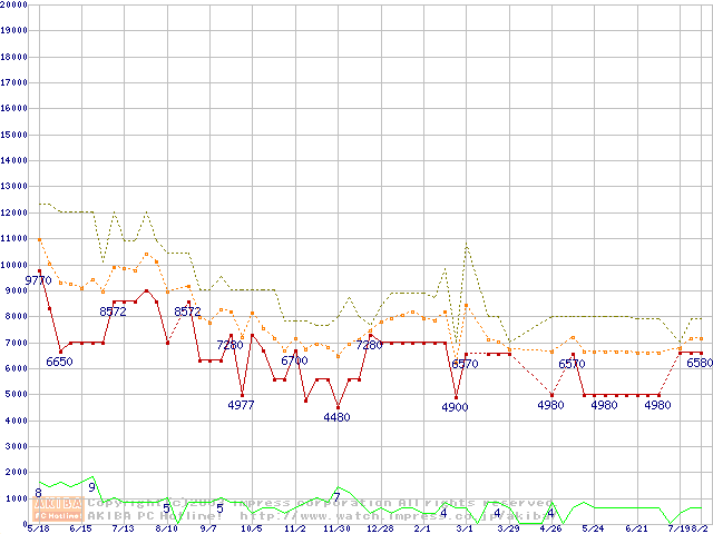 PC100 SDRAM DIMM CasLatency=2 ECC対応の最安値推移