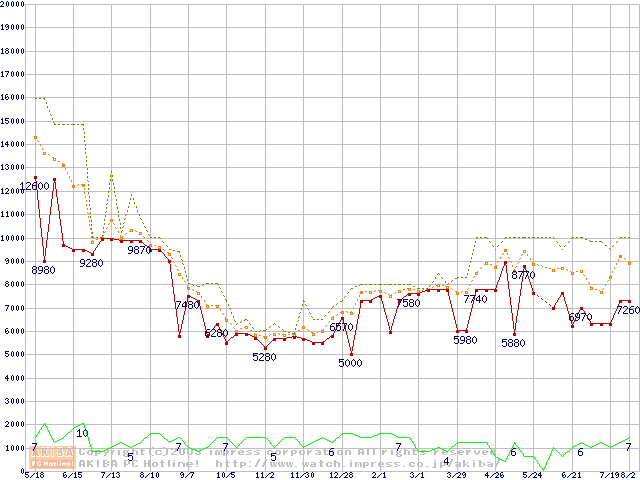PC100 SDRAM DIMM CasLatency=2の最安値推移