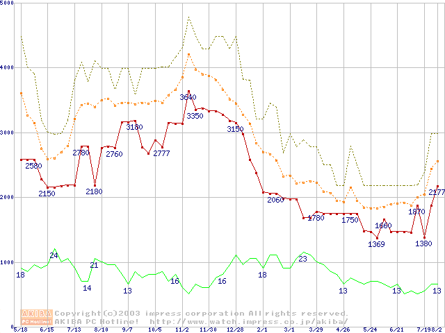 メモリ主要製品の最安値推移