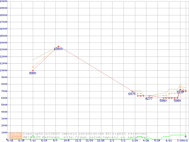 PC2700(DDR333) DDR SDRAM DIMM ECC対応 Registeredタイプの最安値推移