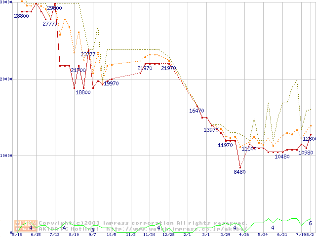 PC2700(DDR333) DDR SDRAM DIMM ECC対応 Registeredタイプの最安値推移