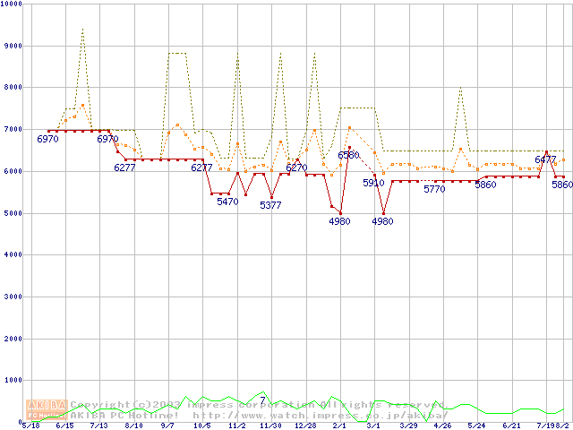 PC800-40 DRDRAM RIMM ECC対応の最安値推移