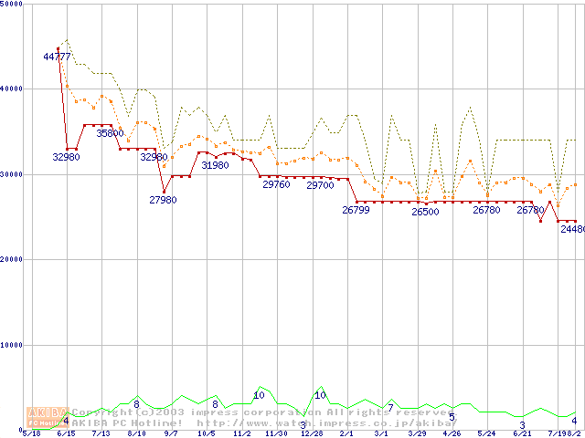 PC800-40 DRDRAM RIMM ECC対応の最安値推移