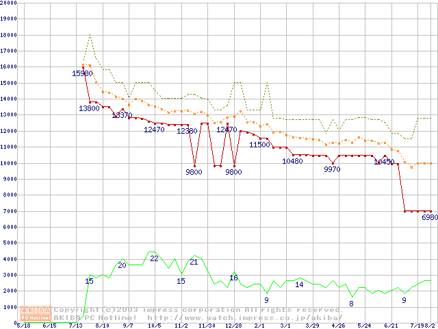 PC1066 DRDRAM RIMM4200(32bit)の最安値推移
