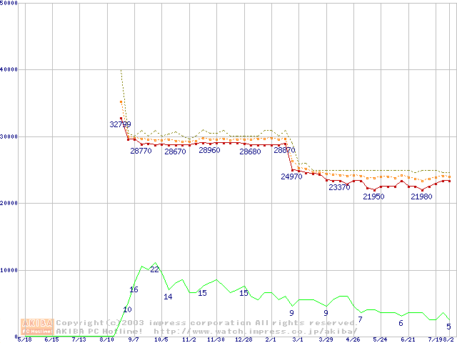 Socket 478 (micro-PGA,FSB 400MHz,L2 512KB,Northwood)の最安値推移