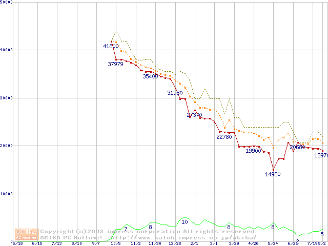 WD Caviar (7200rpm,UltraATA/100,2MB)の最安値推移