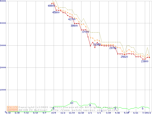 WD Caviar (7200rpm,UltraATA/100,2MB)の最安値推移