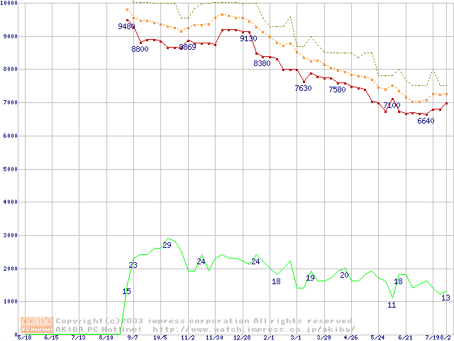 DiamondMax Plus 8 (7200rpm,2MB,UltraATA/133,FDB)の最安値推移