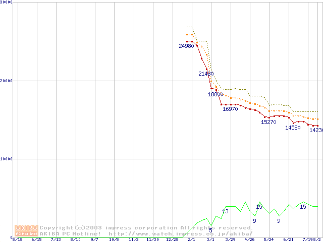 DiamondMax 16 (5400rpm,UltraATA/133,2MB,80GB/Platter,FDB)の最安値推移