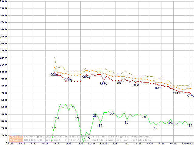 DiamondMax 16 (5400rpm,UltraATA/133,2MB,80GB/Platter,FDB)の最安値推移