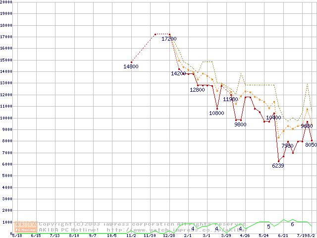 PC3500(DDR433) DDR SDRAM DIMMの最安値推移