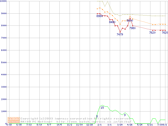 HDD 40GB~50GB未満(5400rpmクラス)の最安値推移