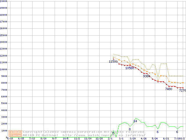 Socket A (OPGA,FSB 266MHz,L2 256KB,Thoroughbred)の最安値推移