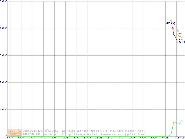 Travelstar 7K60 (9.5mm,7200rpm,UltraATA/100,8MB,FDB,30GB/Platter)の最安値推移