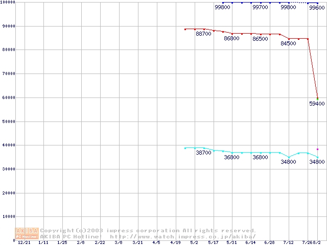| [↓次グラフ]: | Socket A (OPGA,FSB 266MHz,L2 512KB,Barton)の最安値推移 |