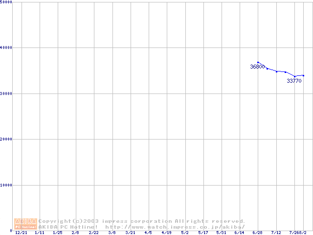| [↑前グラフ]: | Deskstar 180GXP (7200rpm,2MB,UltraATA/100,FDB)の最安値推移 |