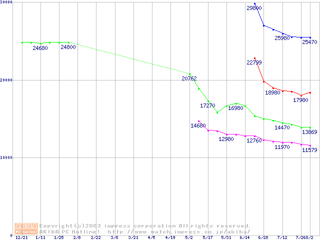 | [↓次グラフ]: | MaXLine Plus II (7200rpm,8MB,UltraATA/133,FDB)の最安値推移 |