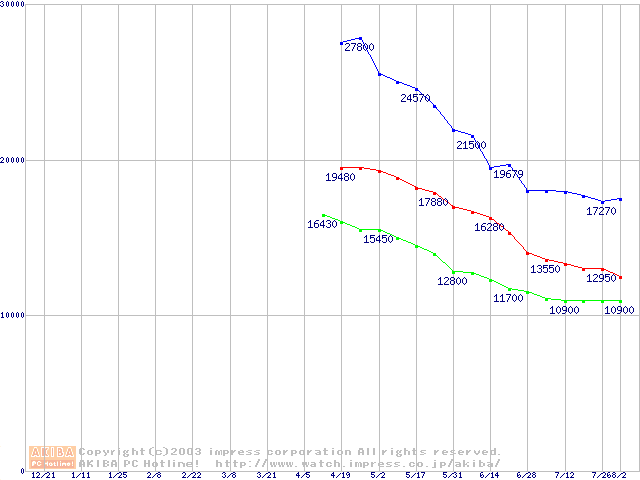 | [↑前グラフ]: | Fireball 3 (5400rpm,UltraATA/133,2MB,BB)の最安値推移 |