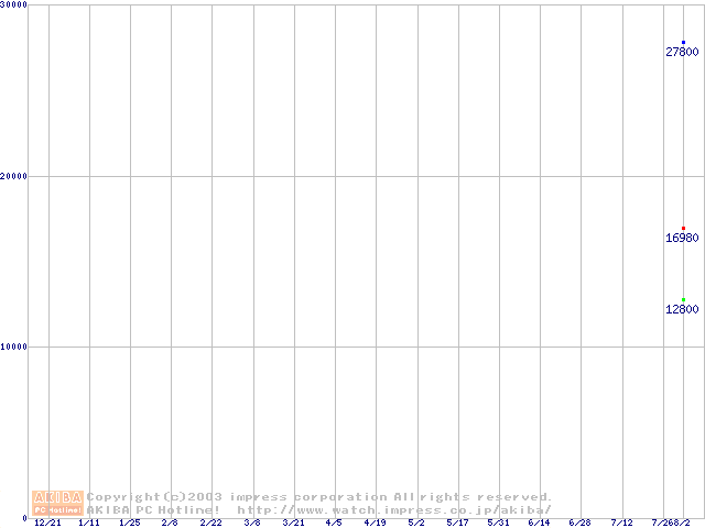 | [↓次グラフ]: | WD Caviar(Special Edition) (7200rpm,UltraATA/100,8MB)の最安値推移 |