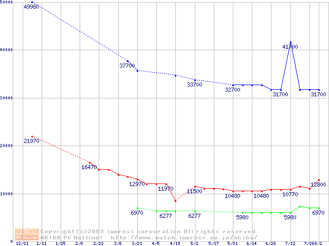 | [↓次グラフ]: | PC3500(DDR433) DDR SDRAM DIMMの最安値推移 |