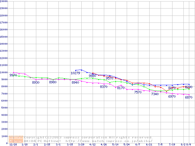 | [↑前グラフ]: | HDD 40GB~50GB未満(7200rpmクラス)の最安値推移 |