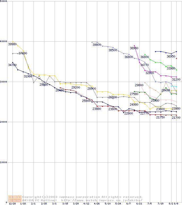 メモリ主要製品の最安値推移
