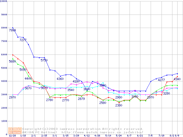 256MBモジュールの最安値推移