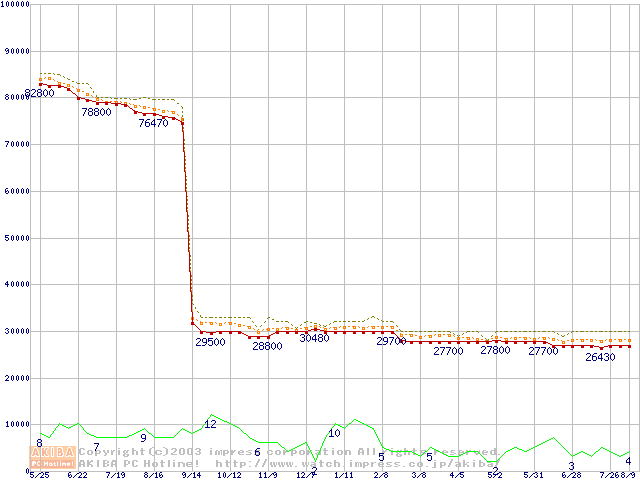 Socket 603 (micro-PGA,FSB 400MHz,L2 512KB,Prestonia)の最安値推移