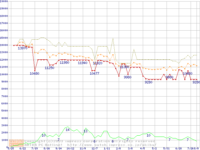 PC800-40 DRDRAM RIMM ECC対応の最安値推移