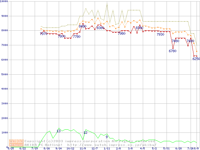 Jupitor (7200rpm,2MB,FDB,UltraATA/100)の最安値推移