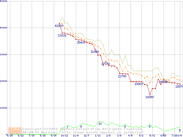 WD Caviar (7200rpm,UltraATA/100,2MB)の最安値推移