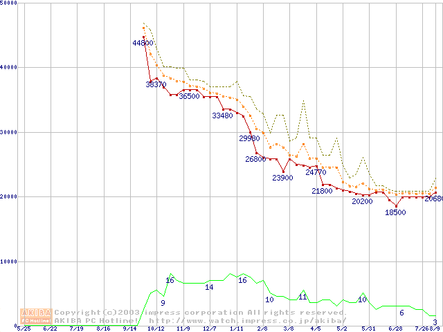 WD Caviar(Special Edition) (7200rpm,UltraATA/100,8MB)の最安値推移