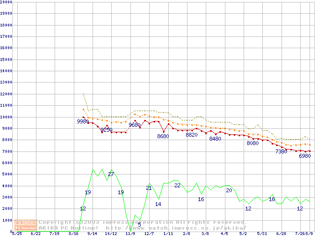 DiamondMax 16 (5400rpm,UltraATA/133,2MB,80GB/Platter,FDB)の最安値推移