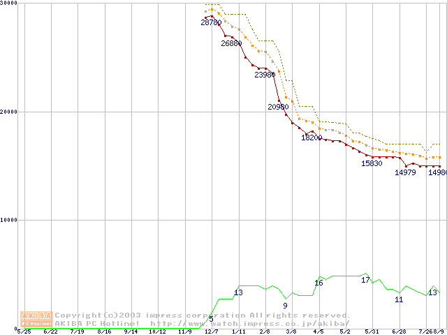 DiamondMax Plus 9 (7200rpm,2MB,UltraATA/133,FDB)の最安値推移