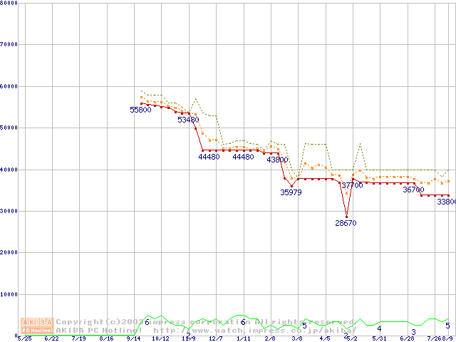 Socket 603 (micro-PGA,FSB 400MHz,L2 512KB,Prestonia)の最安値推移