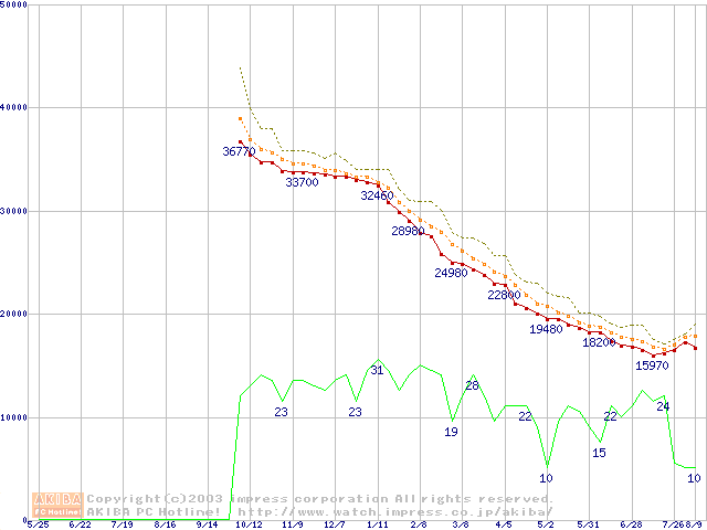 Deskstar 180GXP (7200rpm,8MB,UltraATA/100,FDB)の最安値推移