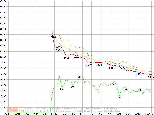 Deskstar 180GXP IC35L060AVV207-0 (60GB)の価格推移