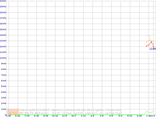 Socket A (OPGA,FSB 266MHz,L2 256KB,Thoroughbred)の最安値推移