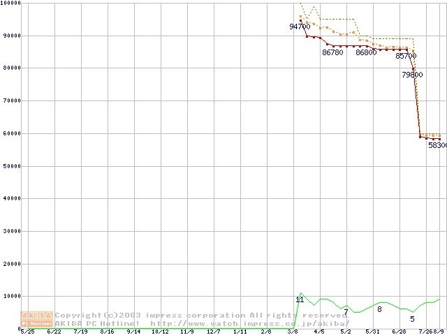 Xeon 3.06GHz(FSB533) リテールパッケージの価格推移
