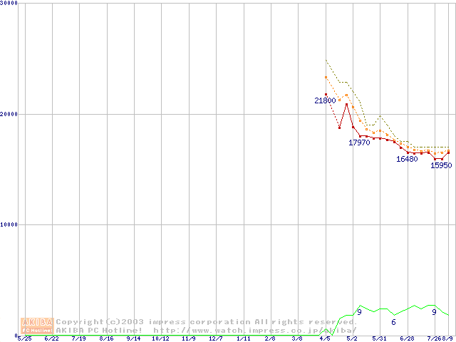 WD Raptor (10000rpm,SerialATA,8MB)の最安値推移