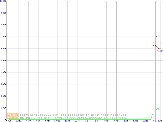 Socket A (OPGA,FSB 266MHz,L2 256KB,Thoroughbred)の最安値推移
