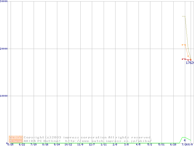 PC3700(DDR466) DDR SDRAM DIMMの最安値推移