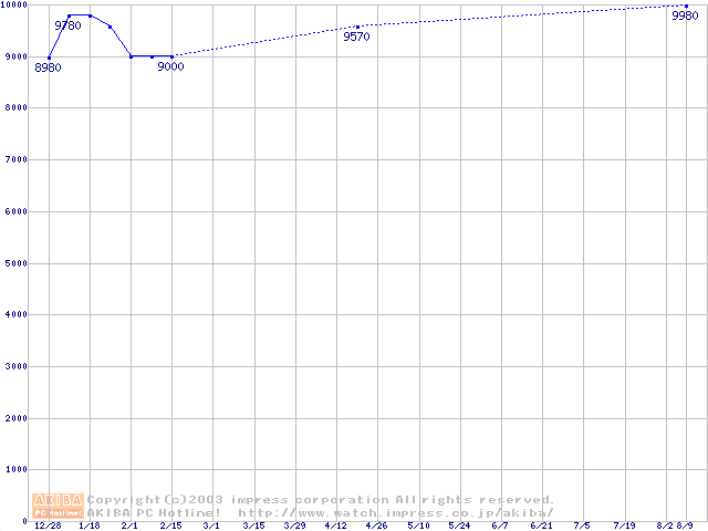 | [↓次グラフ]: | MHTシリーズ (9.5mm,4200rpm,UltraATA/100,2MB,FDB,40GB/Platter,FDB)の最安値推移 |