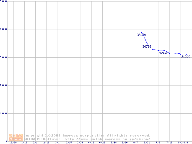 | [↑前グラフ]: | DiamondMax Plus 9 (7200rpm,8MB,SerialATA/150,FDB)の最安値推移 |