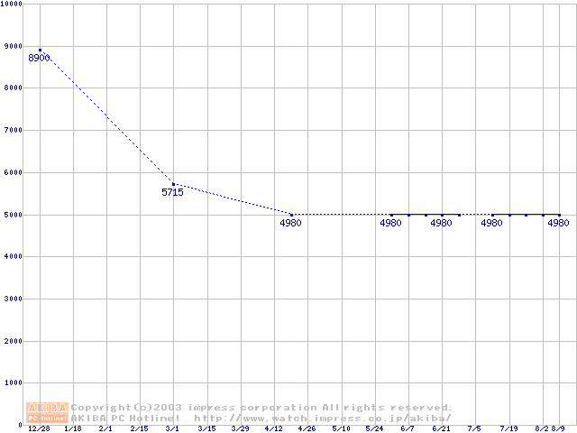 | [↓次グラフ]: | PC133 SDRAM DIMM CasLatency=3の最安値推移 |