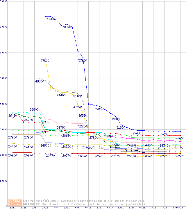 CPU主要製品(最安値2万円~3万円未満)の最安値推移