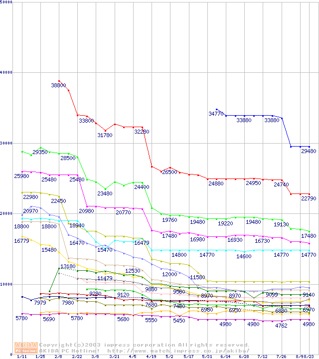 Socket A・FSB 200MHzの最安値推移